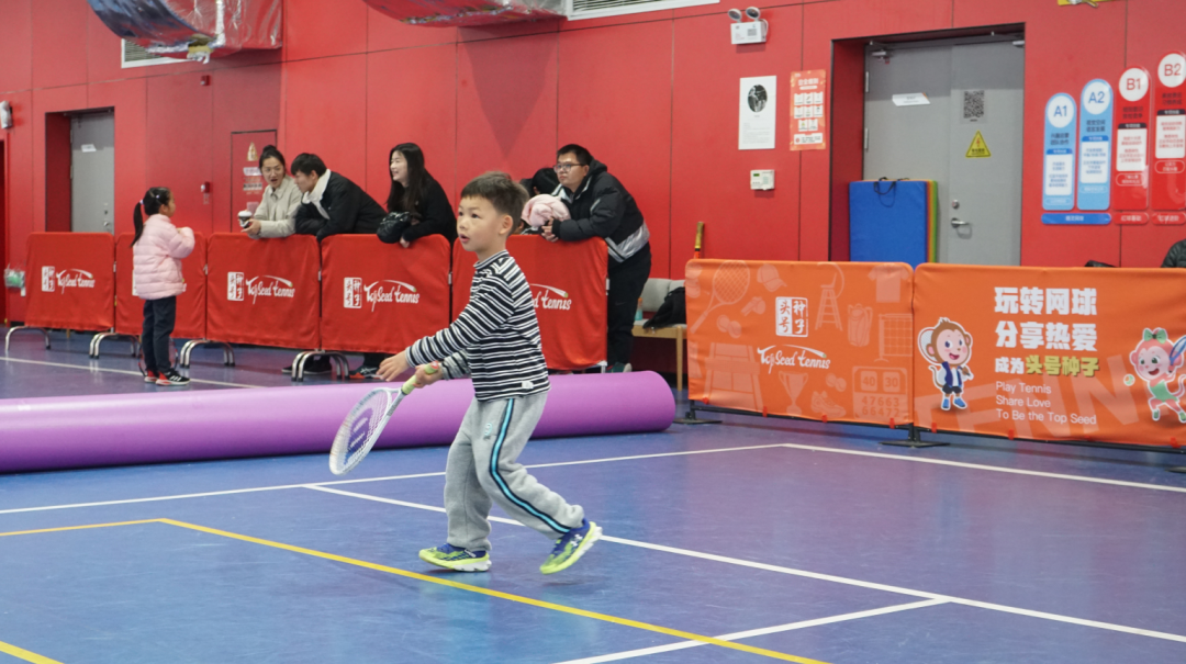 比赛正式开始,双方球员握手,然后展开对决。小小少年们潇洒挥拍、奋力比拼,如精灵一般在球场上恣意奔跑,每一次击球都铿锵有力。要知道他们中最年长的孩子不过8周岁,然而稚嫩的身体里却迸发出巨大的能量。